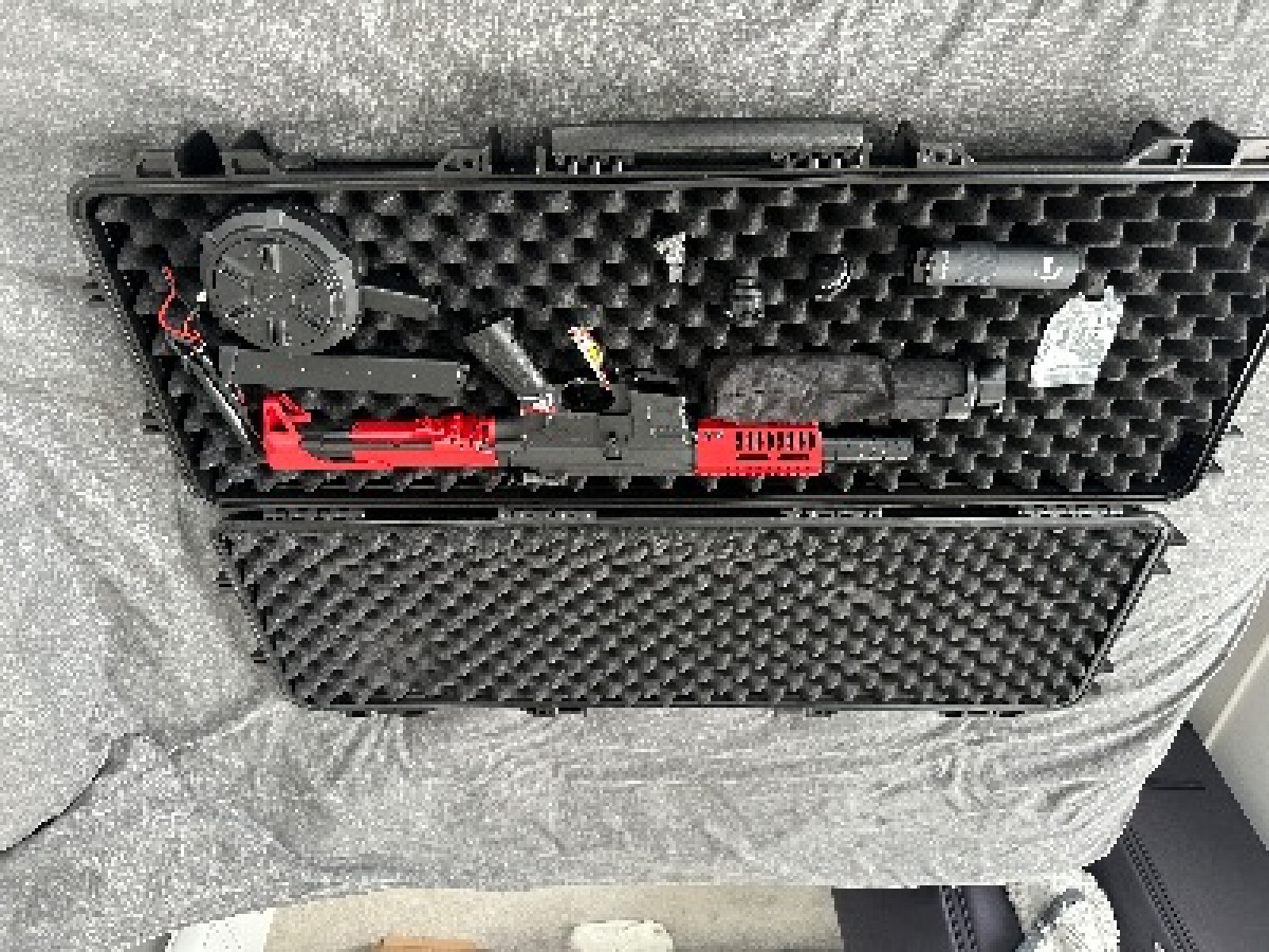 Unused g and g arp 9 still has the tags on the gun with all original parts (flip up sights magazine) also has a brand new drum mag, silencer, tracer unit, batteries and charger, large nuprol case and a novristch ghillie hood all brand new and unused!