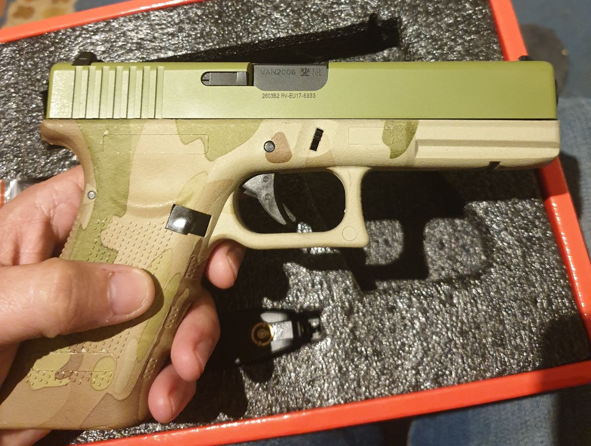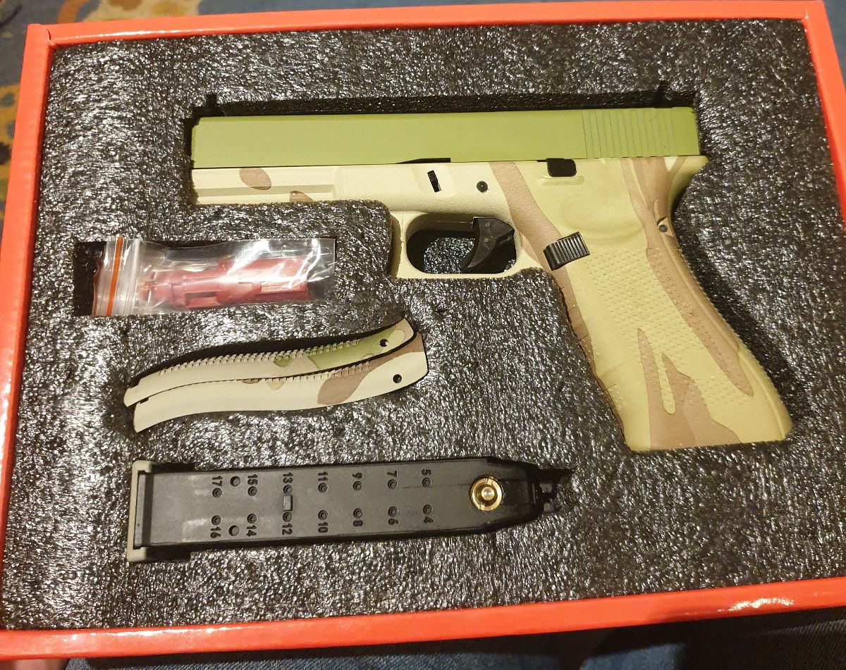 RAVEN EU 17 GBB, pistol,green gas,leak free mag only had around 100 shots put through to test it,has not been used in game,spare nozzle,handgrips,orings,boxed,many thanks for looking,price includes delivery