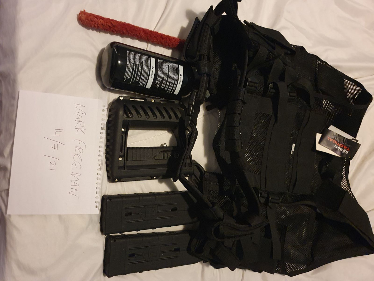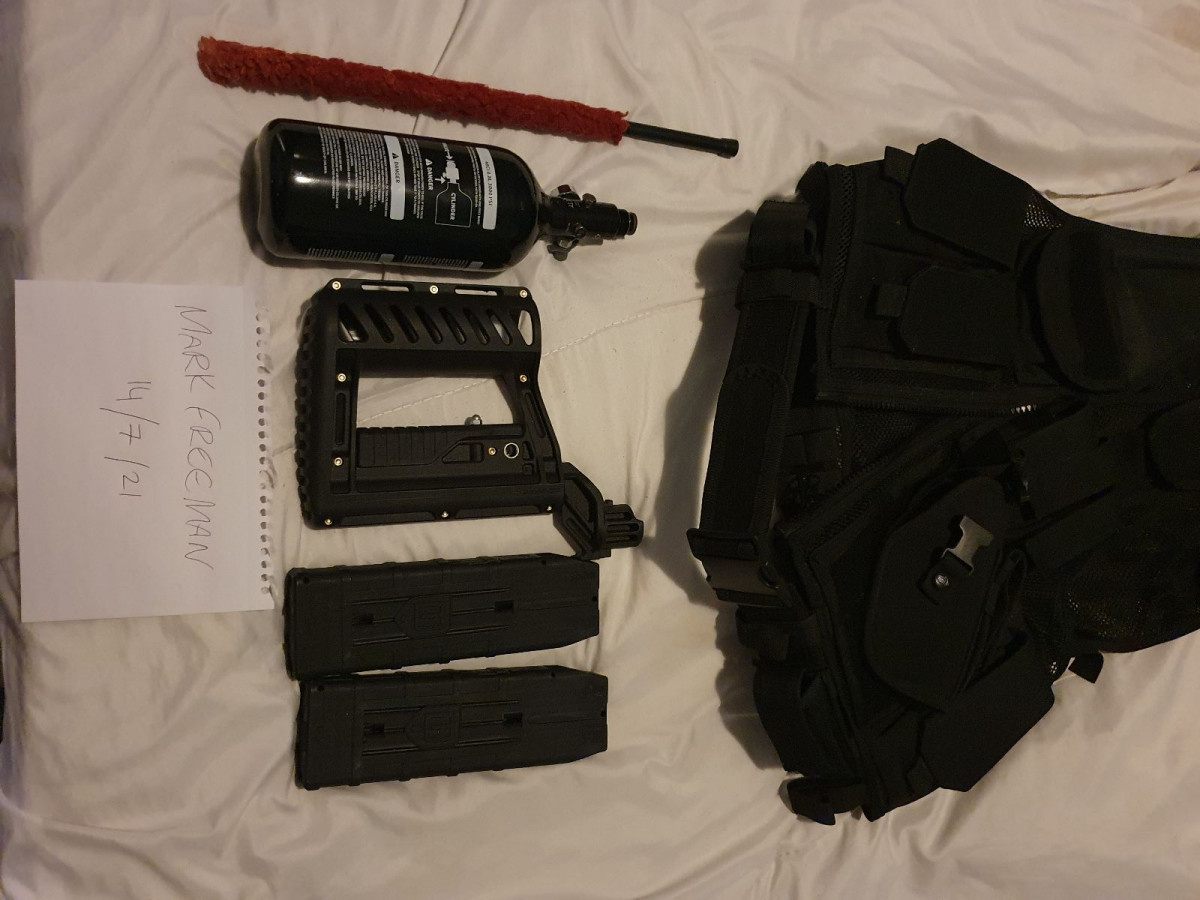 Selling my mg100 stock , air tank, tac vest and 2 dam mags