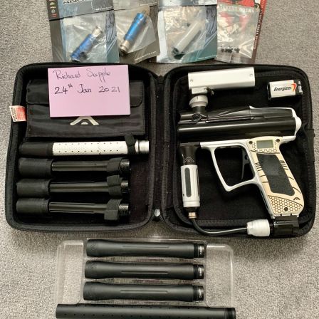 FULLY BOXED AND ALL PARTS- USED ONCE- PERFECT FOR A XMAS GIFT AS IT LOOKS NEW. COMES WITH SPEED HOPPER The Tippmann…