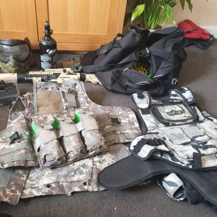Paintball gun and other equipment as seen in photos the gun is the “Azodin kaos” and was only used once sat in the box…