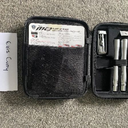 Comes with Protective casing containing a 689 and 684 barrel back, Dye multi tool, grease, Barrel sock, start up guide and charger. Also comes with wireless charging board but needs MOSAir fitted.