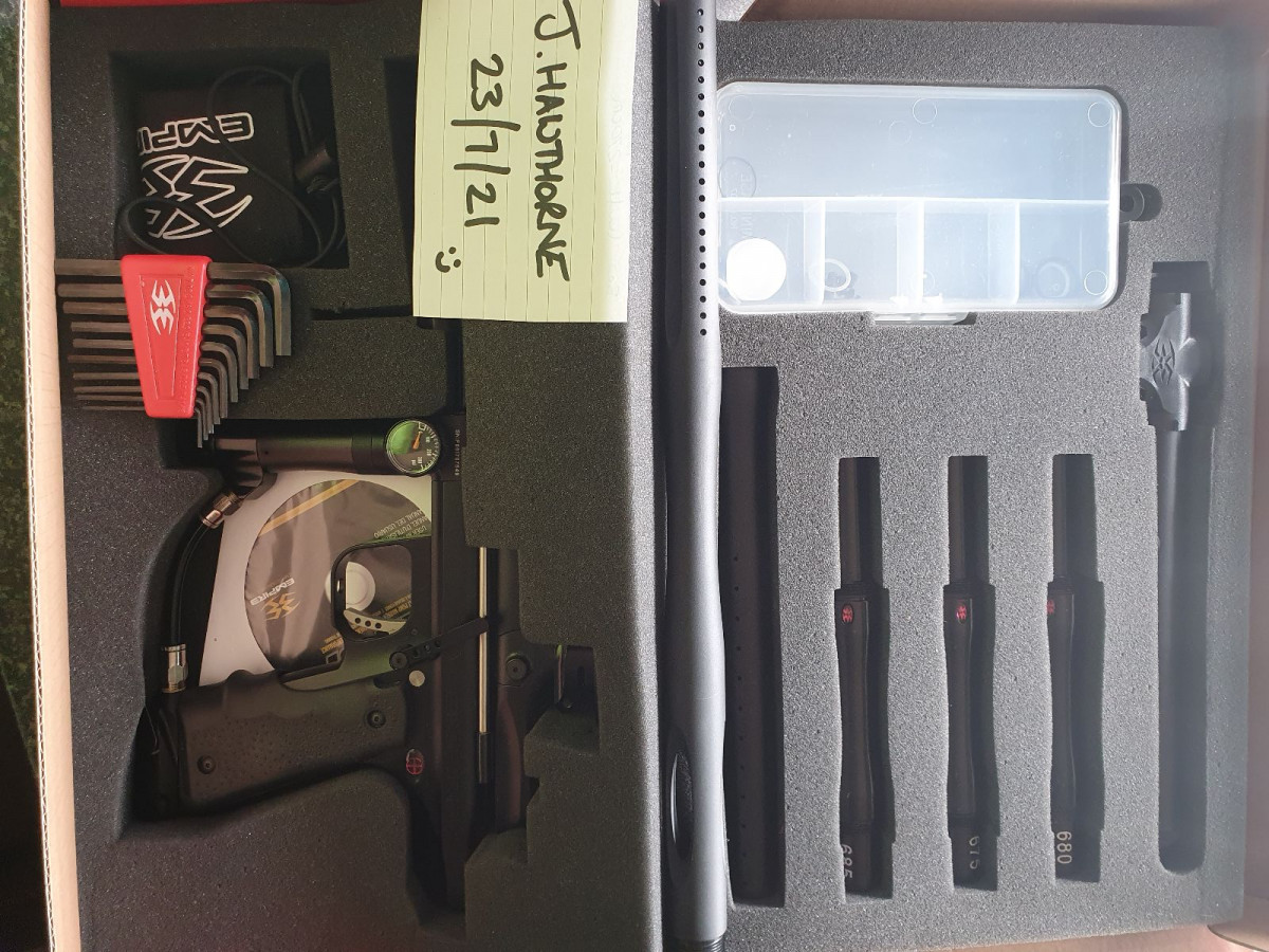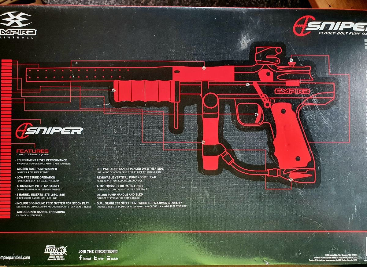 Empire sniper pump with all accessories and extra barrel. Brand new condition, purchased at Mayhem last year, only been shot in chrono.