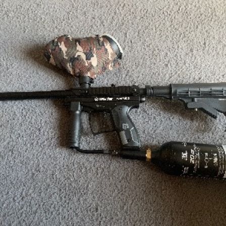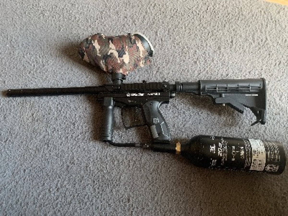 Spyder mr100 paintball gun also comes with two masks, smoke grenades and plenty of paintballs!!!