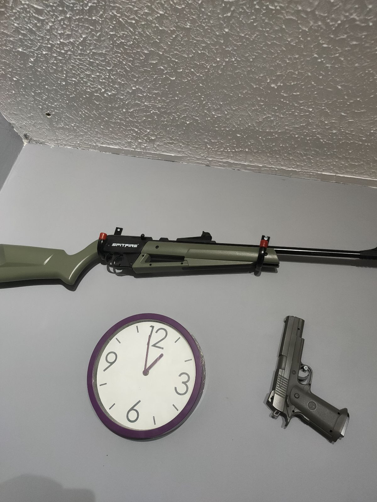 Brought New for £90 last year. Used once. Spitfire gun . Fires pellets and ball bearings. Comes with pellets and ball bearings ammo