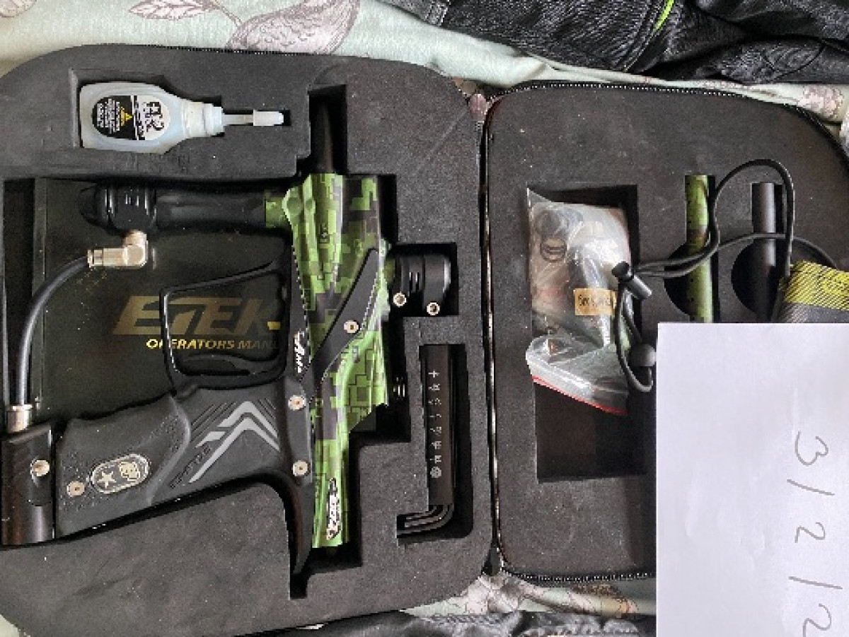 Full BT4 Marker package. Includes 20oz gas bottle, marker, accessories, mask, barrel cover, hopper. Boxed never used! …