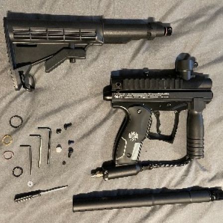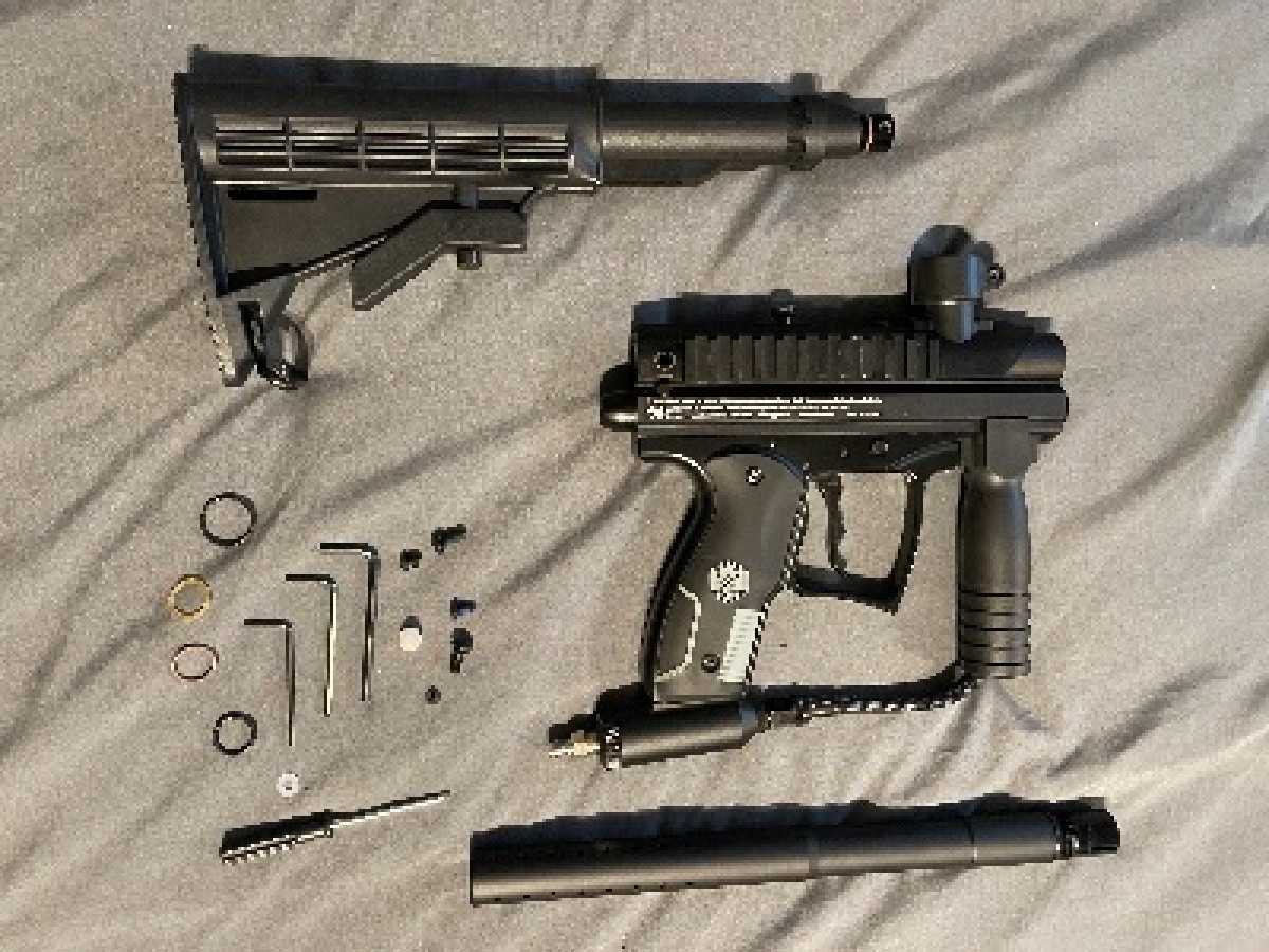 Marker has adjustable shoulder stock. All in perfect working condition. Kit includes: