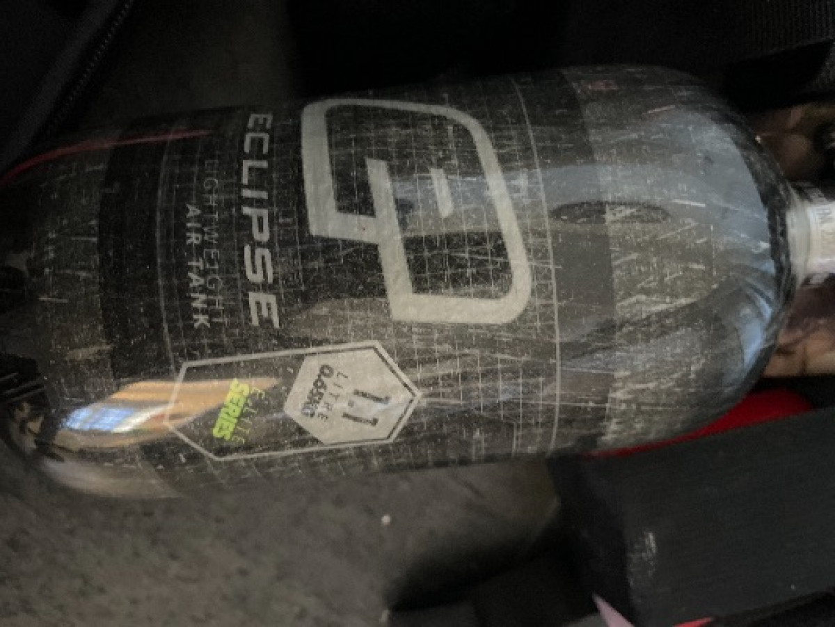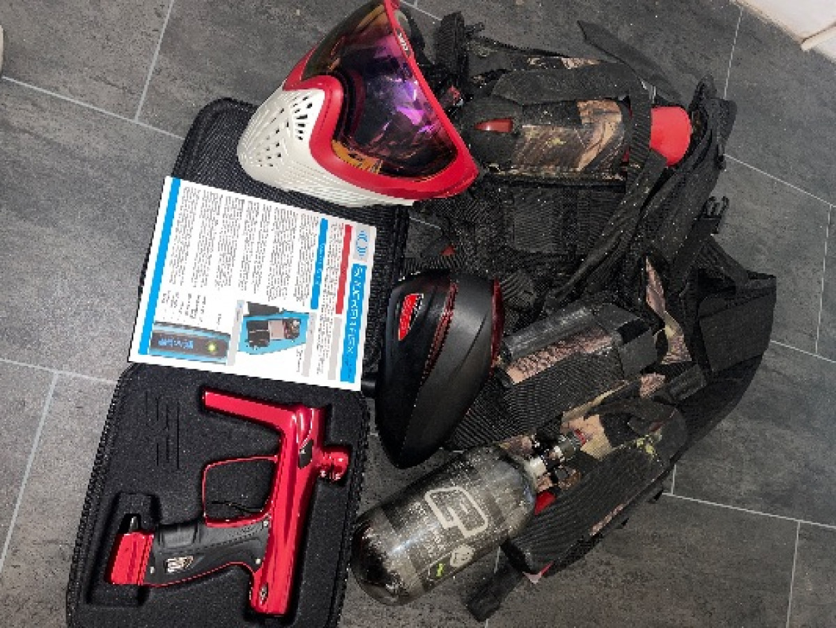 With Eclipse 1.1 litre lightweight carbon air tank / virtue mask / r2 dye hopper / vest with
