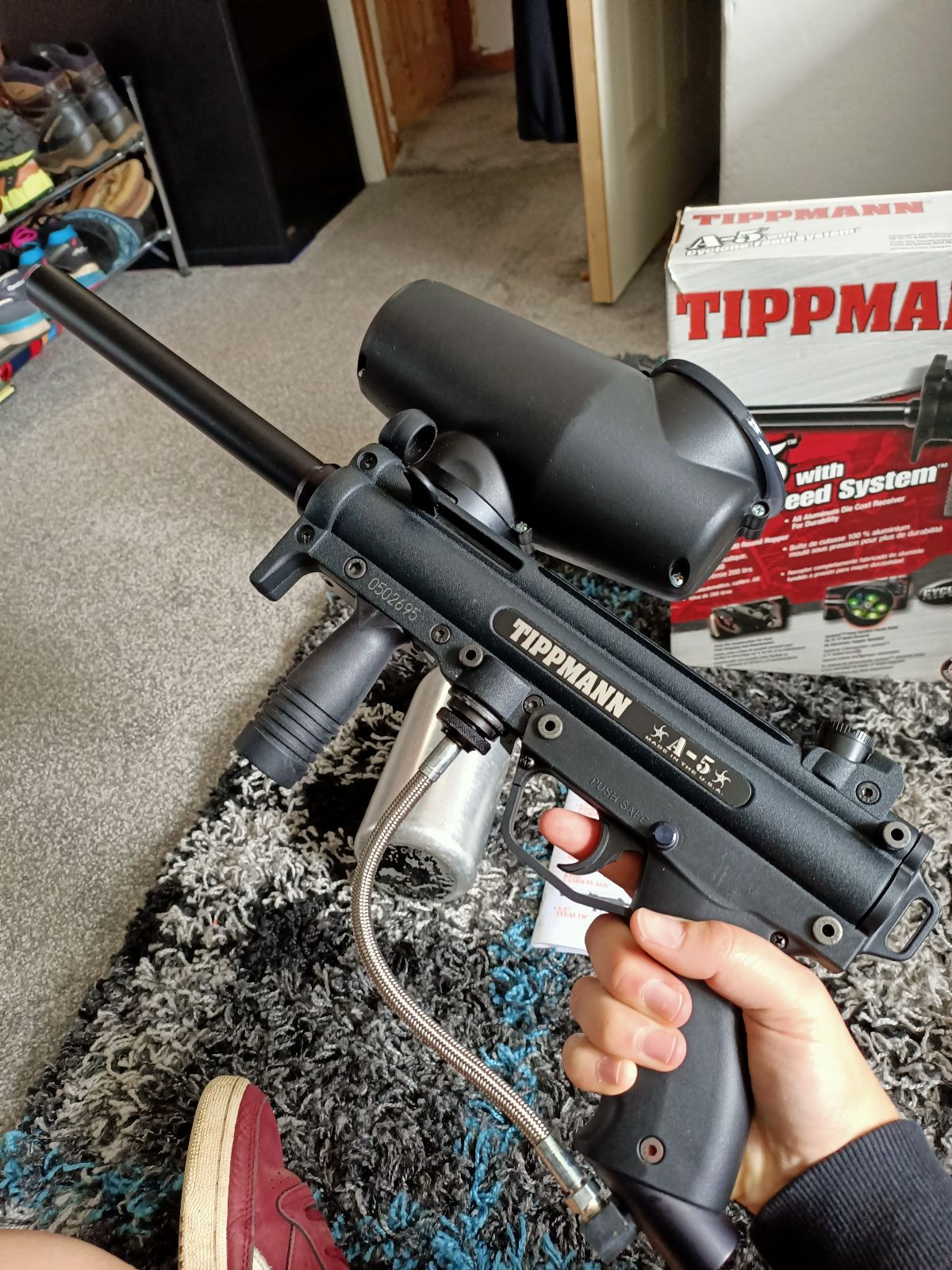Great bit of kit only used a handful of times I baught this new quite a few years ago. It still looks great, it comes with an extended barrel rear shoulder stock and air canister if your looking at this add you have probably already looked up the reviews and spec of this paintball gun
